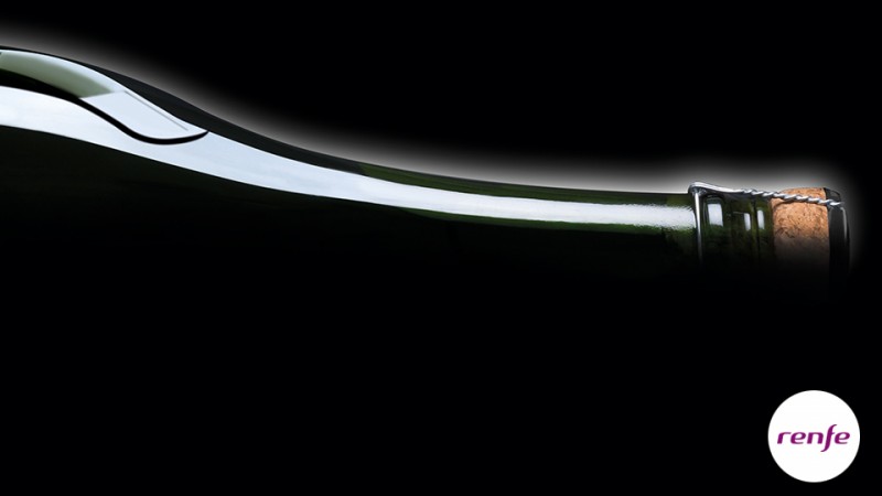 Quisimos transmitir el sentimiento de celebración que este hito conllevaba, y utilizamos la imagen de los vinos espumosos de los dos países como símbolo de unión entre ellos. Para ello creamos una analogía visual entre la forma de una botella de cava y la de un tren AVE.