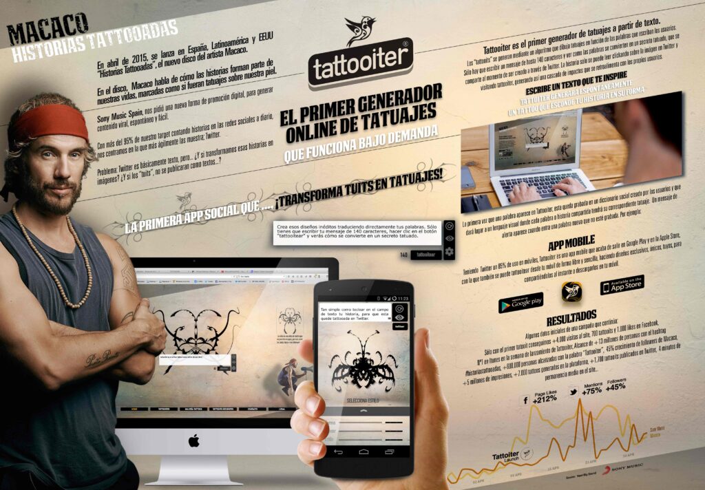 Creamos así “Tattooiter”, el primer generador de tatuajes a partir de texto. Los “tattooits”, se creaban mediante un algoritmo que dibujaba unas formas u otras en función de las palabras que escribían los usuarios. Después, quien quisiera podía compartir su tattoit en Twitter.